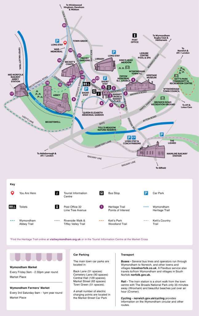 Printed timetables are available at Wymondham Tourist Information Centre, Market Cross, Market Place, NR18 0AX