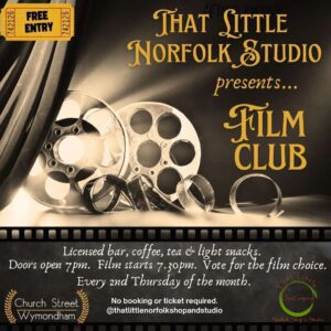 Film Club @ The Studio Come down and get comfy for Film Club in our tranquil studio. The move will be Treacle Junior as voted for by the community. Entry is free 12 Nov 19:00 - 22:00 That Little Norfolk Studio Abbey Schoolrooms, Church Street, Wymondham, NR18 0PH
