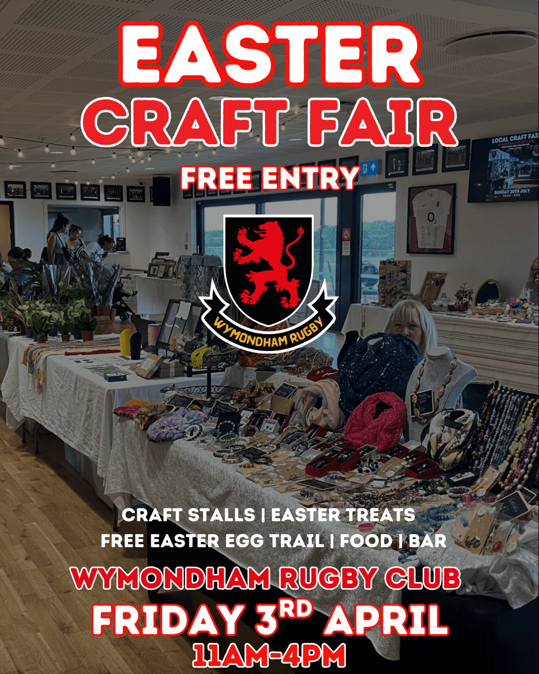 Easter Craft Fair Join us for an Easter craft fair with Easter treats, food and bar open + Add to Google Calendar + iCal / Outlook export Date Apr 03 2026 Time 11:00 - 16:00 Local Time Timezone: America/New_York Date: Apr 03 2026 Time: 06:00 - 11:00 More Info Read More Location Wymondham Rugby Club Bray Drive, Wymondham, NR18 0GQ Category Family Friendly Food & Drink Read More Share this event