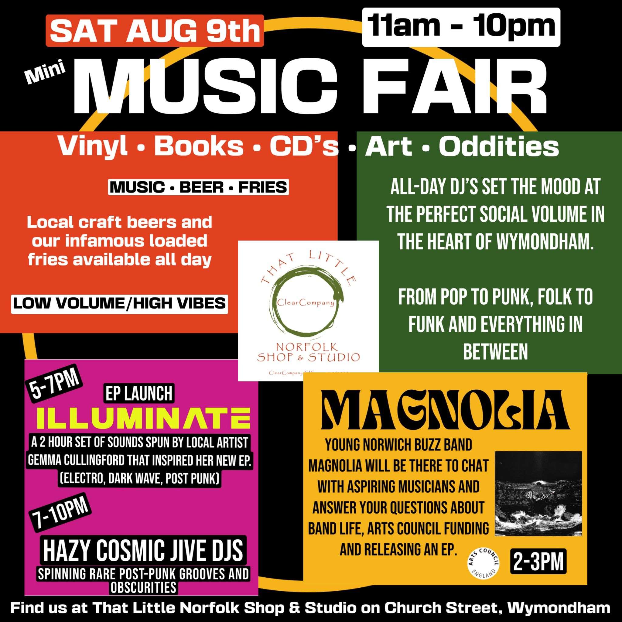 Join us for a full day of low volume, high vibes at our mini summer Music Fair – a celebration of sound, creativity, and community in the heart of Wymondham!